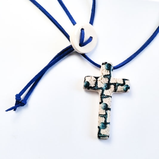 Blue Marble Cross Necklace