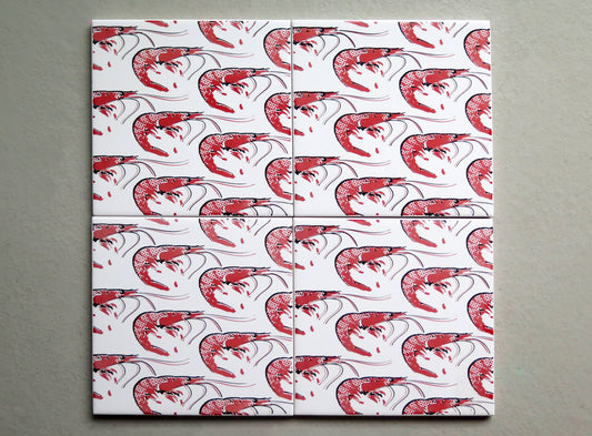 Self-Adhesive Mural 4 Tiles, Prawns