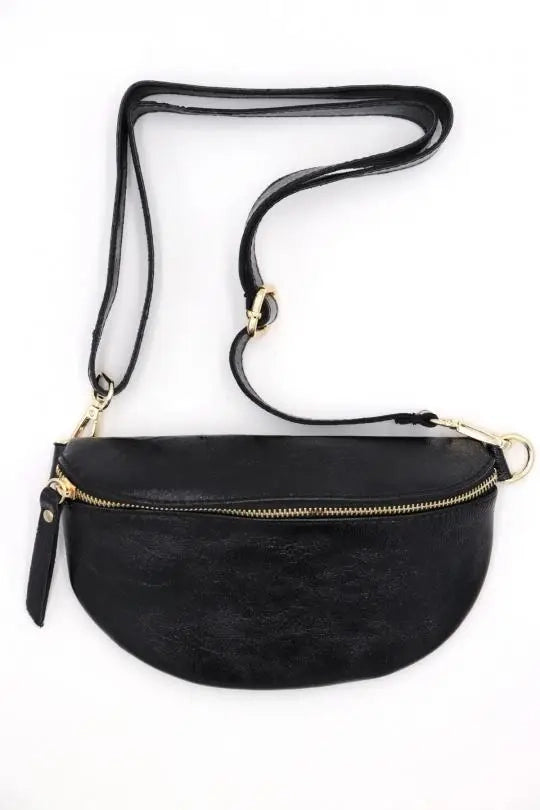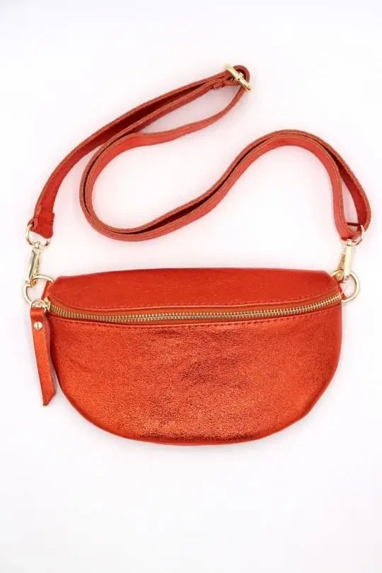 Metallic Leather Fanny Pack Crossbody Bag
